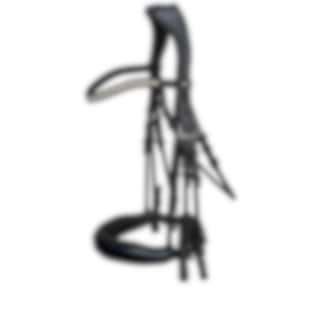 Die Kandare ist rundgenäht und hat ein schönes Stirnband mit großen glitzernden Kristallen, das leicht geschwungen ist.