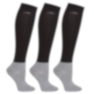 Super schöne Stiefelstrümpfe von Schockemöhle Sports! 3er-Pack schwarze Kniestrümpfe mit grau verstärktem Fuß.