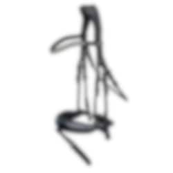 Bei dieser Trense ist der Nasenriemen extra breit mit konisch zulaufenden, geschwungenen Seiten, um den Wangenknochen freizulegen und das Risiko von Quetschverletzungen zwischen Biss und Nasenriemen zu reduzieren. Der Nasenriemen wird mit einem Pullback geschlossen.