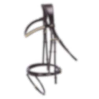 Elegante Trense mit anatomisch geformtem Genickstück, geformtem englischen Nasenriemen und abnehmbarem Sperrriemen. Clincher-Stirnband mit praktischem Schnellverschluss für einfache Handhabung.