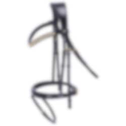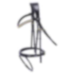 Elegante Trense mit anatomisch geformtem Genickstück, geformtem englischen Nasenriemen und abnehmbarem Sperrriemen. Clincher-Stirnband mit praktischem Schnellverschluss für einfache Handhabung.