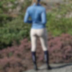 - Drehen Sie die Reithose vor dem Waschen auf links, um unnötigen Verschleiß am Silikonbesatz zu vermeiden.