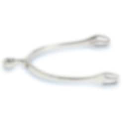 Traumhaft wohlgeformte und schöne Sporen, die aufgrund ihrer Form auch auf Reitstiefeln mit schmalen Versen gut sitzen. 25 mm mit weichem Rad.