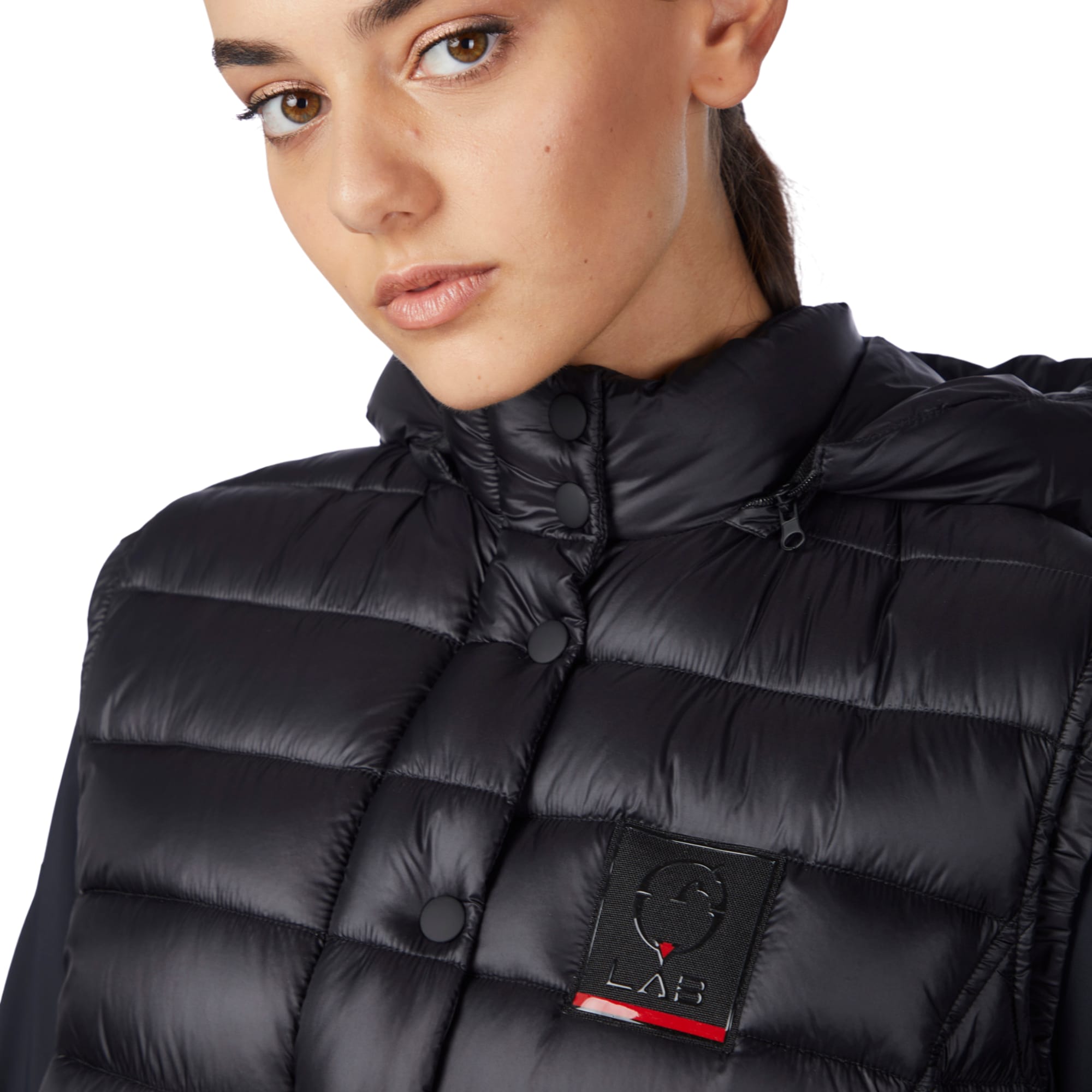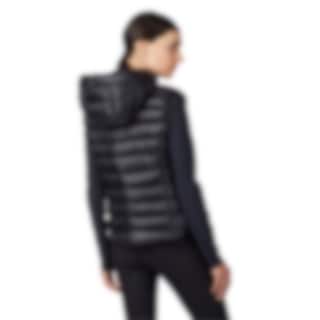 Die Weste ist mit einer leichten, wärmenden Ecodown-Fütterung ausgestattet, die für angenehme Isolierung sorgt und gleichzeitig ein leichtes, komfortables Tragegefühl bietet. Sie verfügt über einen zentralen Reißverschluss vorne, ergänzt durch überlappende Druckknöpfe für zusätzlichen Schutz vor Kälte. Die verstellbare Kapuze bietet zusätzliche Funktionalität.