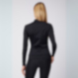 Das schwarze, langärmelige Reitshirt hat eine figurbetonte Passform und einen elastischen Stoff, der sich den Bewegungen des Körpers anpasst und so ein angenehmes und flexibles Tragegefühl bietet. Das dezente Vestrum-Logo auf der Brust und die eleganten Details machen das Reitshirt ebenso stilvoll wie funktional - perfekt für Training und Alltag.