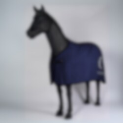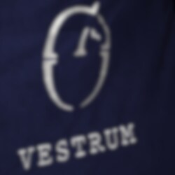 Die Fleecedecke von Vestrum ist in Marineblau gehalten und verfügt über stilvolle Details wie das Vestrum-Logo und den Schriftzug auf der linken Seite der Pferdedecke.